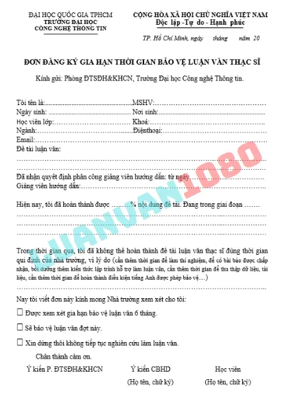 Đơn xin gia hạn luận văn thạc sĩ UIT