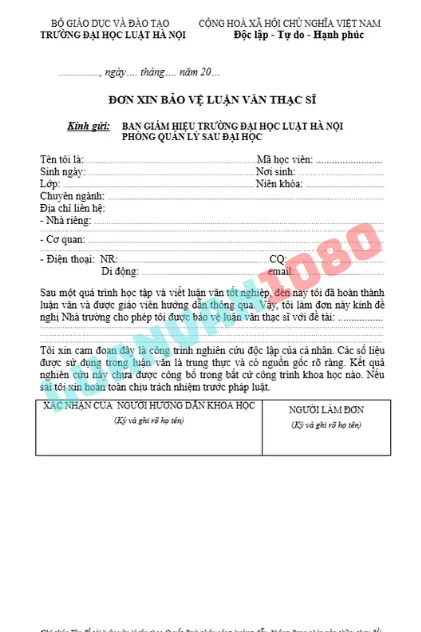 2.9. Mẫu đơn xin gia hạn bảo vệ luận văn thạc sĩ trường Đại học Luật Hà Nội