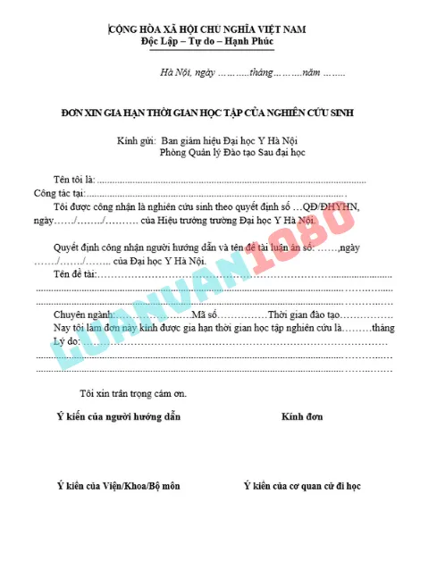 2.7. Mẫu đơn xin gia hạn bảo vệ luận văn thạc sĩ trường Đại học Y Hà Nội