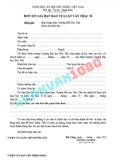 2.2. Mẫu đơn gia hạn bảo vệ luận văn thạc sĩ trường Đại học Duy Tân