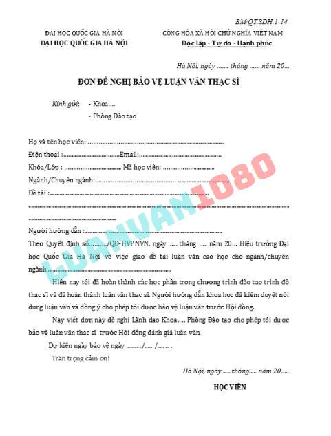 2.8. Mẫu đơn xin gia hạn bảo vệ luận văn thạc sĩ trường Đại học Quốc gia Hà Nội