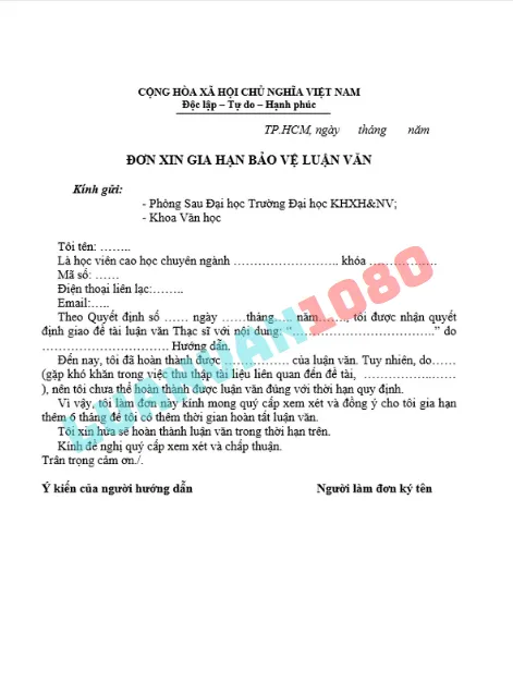 Đơn xin gia hạn luận văn thạc sĩ HCMUSSH