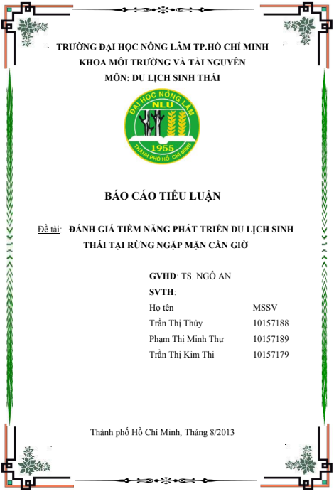 Tiêu đề: “Tiểu luận Du lịch sinh thái – Đánh giá tiềm năng phát triển du lịch sinh thái tại rừng ngập mặn Cần Giờ.”