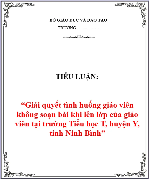 Tên đề tài: “Giải quyết tình huống giáo viên không soạn bài khi lên lớp của giáo viên tại trường Tiểu học T, huyện Y, tỉnh Ninh Bình.”